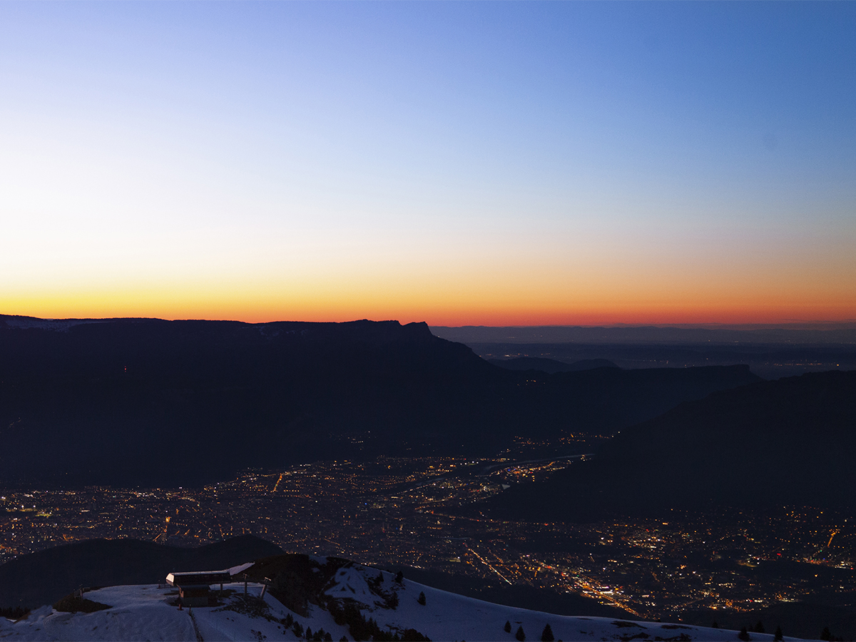✔ Chamrousse ou comment apprécier un café chaud sorti du thermos avec une vue magnifique sur la vallée grenobloise illuminée
