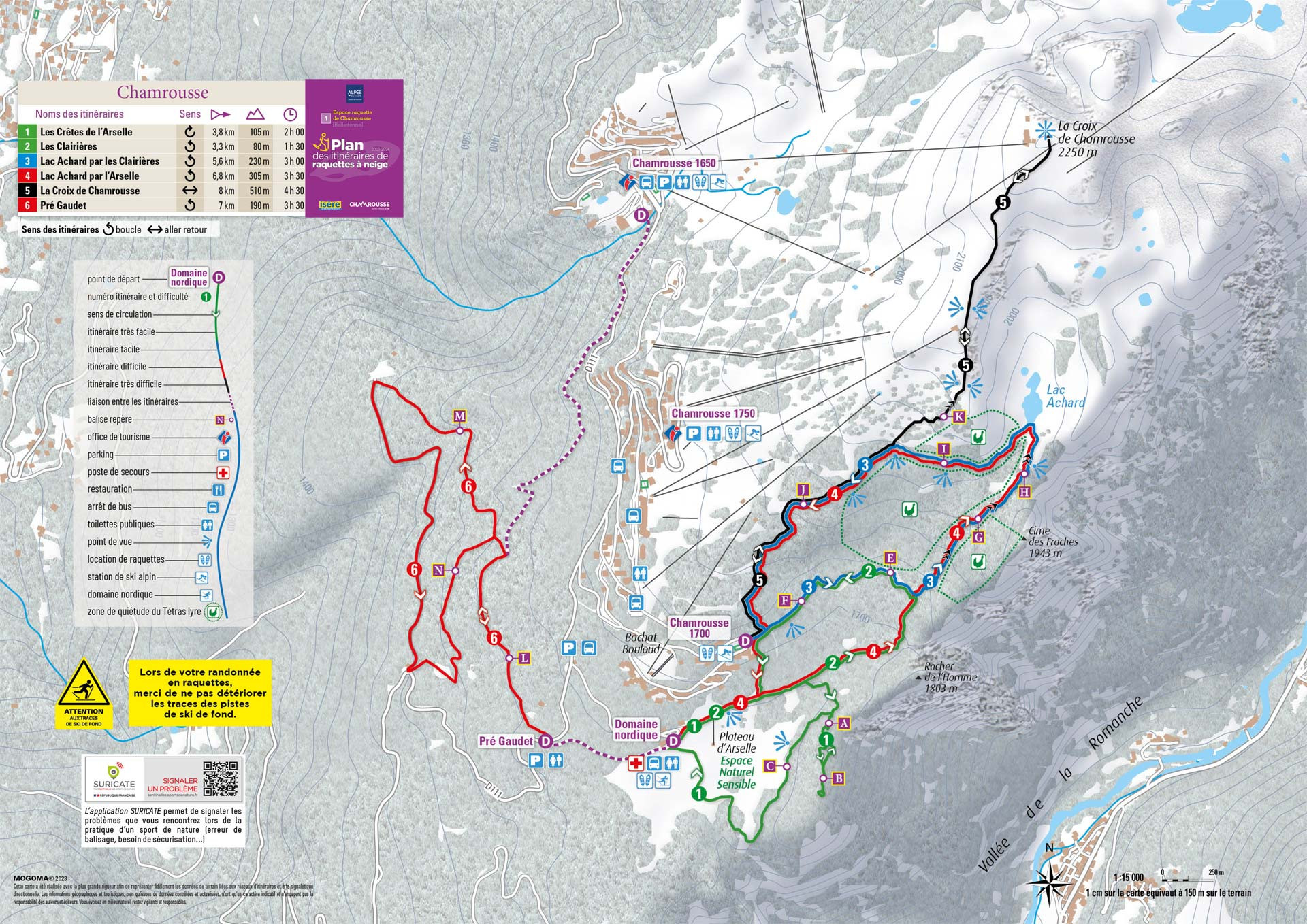 Plan domaine nordique - ski de fond et raquettes Chamrousse 2024-2025